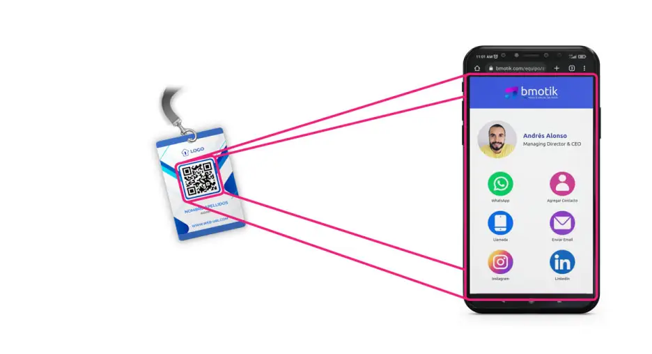 Con el módulo de QR VCard, tus asistentes podrán visualizar la tarjeta de presentación (VCard) de otros participantes, escaneando el código QR de su escarapela. Generando contactos rápidos durante tu evento.